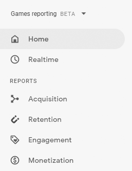 左侧窗格中的报告列表会随之变化,改为显示游戏报告的四个类别:用户获取情况、留存率、互动度、获利以便进一步分析使用。