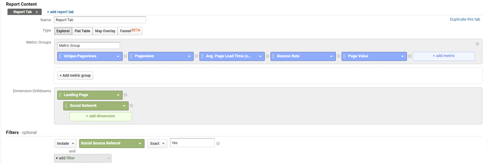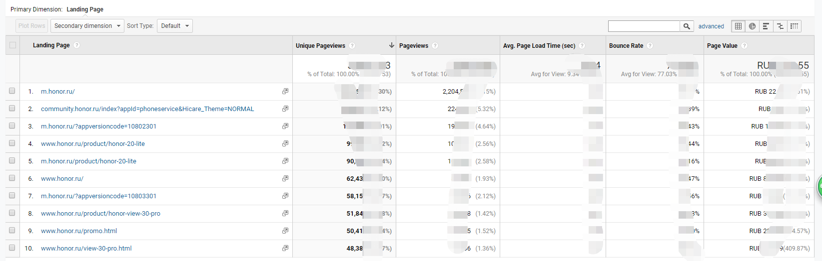 此分析可以告诉我们哪些着陆页最受欢迎、哪些类型的内容最有价值。也可以深入每个登录页面上的社交网络占比。