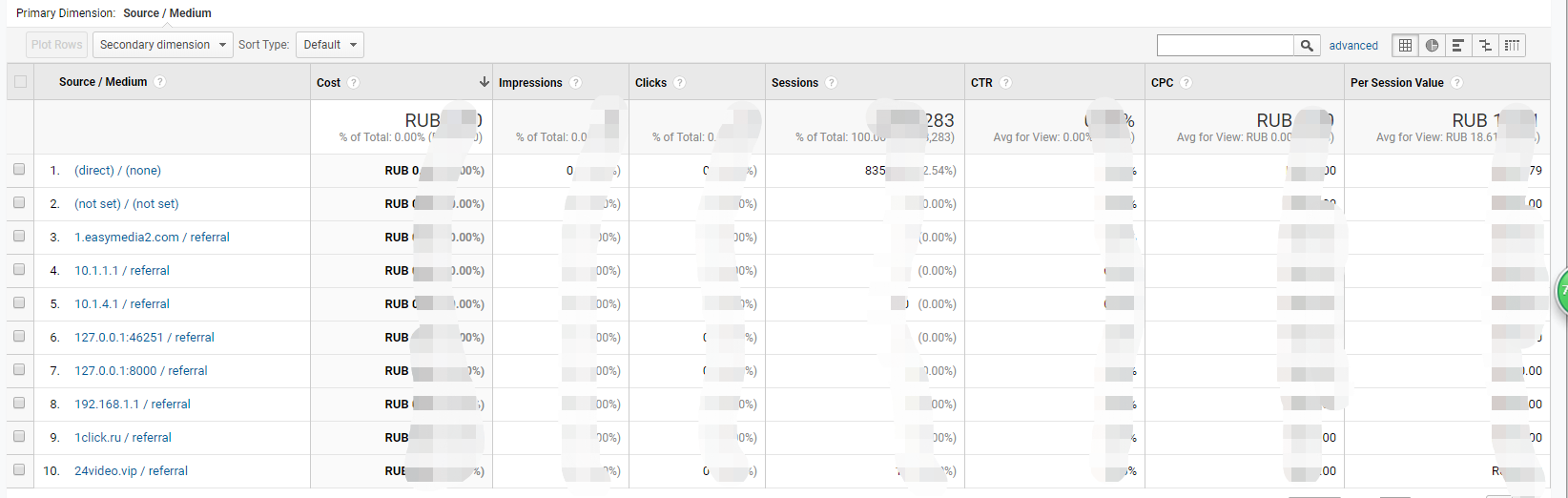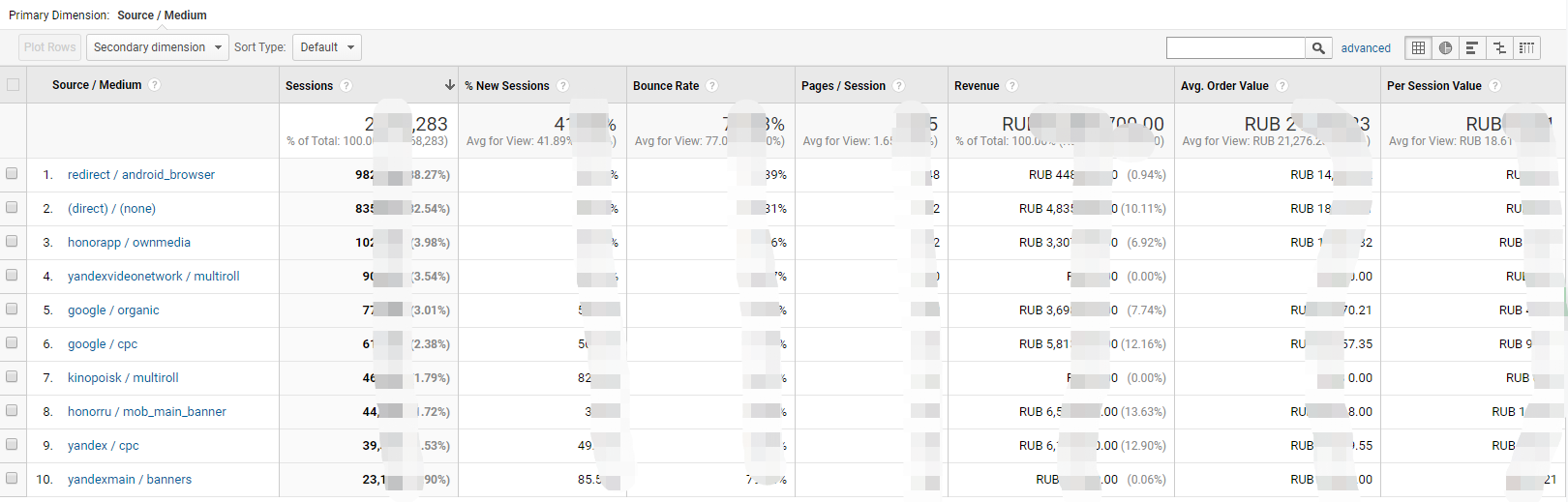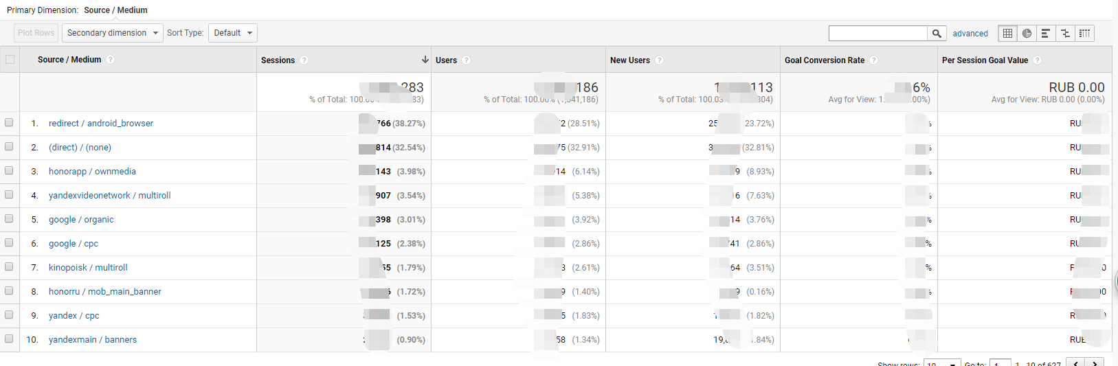 我们可以点击报告中的Source/Medium选项,查看广告系列的具体信息。