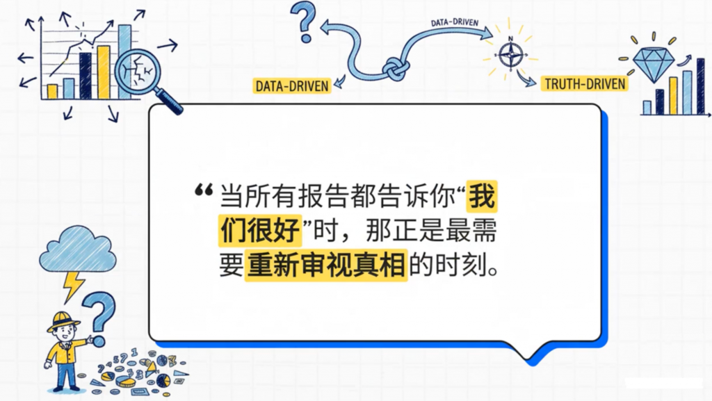 而“真相驱动”则要求决策者必须主动挑战数据表象,追溯到底层逻辑,用数据治理的投入来换取决策的确定性。